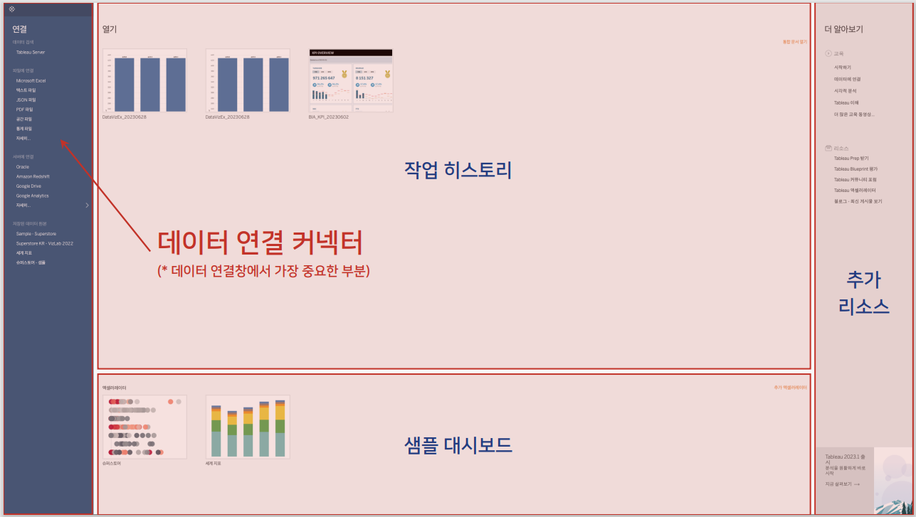 | 데이터 연결창 | 데이터 준비창 | 데이터 작업창 |