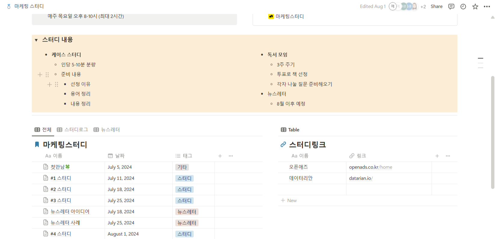 - 7월까지는 오픈애즈·데이터리안 등의 플랫폼에 게시된 데이터 마케팅 케이스를 학습하고 서로 공유